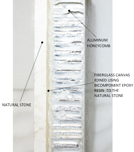Bi-component epoxy adhesives allow the combination of an aluminium honeycomb panel with fiberglass net and natural stones of variable thickness, to create a final product called "lightened natural stone".